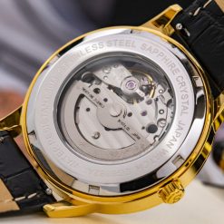 Đồng hồ nam SG8882.4601AT đen dòng đồng hồ cơ automatic giảm thiểu việc thay pin, thiết kế tối giản, thanh lịch dành cho các quý ông yêu thích sự nhẹ nhàng, đơn giản với mặt đồng hồ tròn, vỏ máy bằng thép không gỉ mạ vàng sáng bóng phối cùng dây da thật có vân màu đen hài hòa cùng nền số đen, kim chỉ mạ vàng nổi bật, mặt kính cong sapphire chống trầy bảo vệ máy hiệu quả