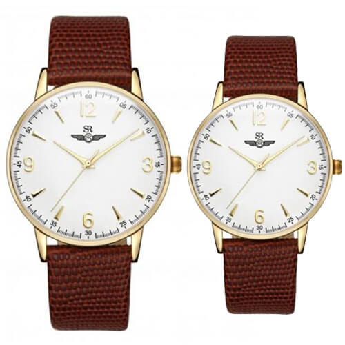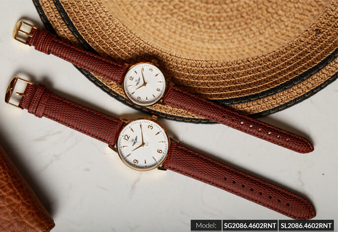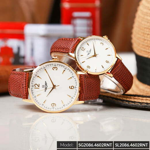 Đồng hồ cặp đôi SRWATCH SR2086.4602 trắng thiết kế sang trọng nhưng không kém phần hiện đại với mặt đồng hồ tròn truyền thống có nền số màu trắng, các kim chỉ thanh mãnh được mạ màu vàng sáng bóng, ở bốn góc có 4 chữ số giờ 3, 6, 9 và 12 giúp dễ dàng đọc giờ, vỏ máy bằng thép không gỉ mạ vàng công nghệ cao kết hợp cùng dây đeo da da thật màu nâu dạng lưới thêm phần trẻ trung và sang trọng. Đồng hồ đôi SR2086.4602 Renata trắng chính là món phụ kiện thời trang không thể thiếu dành cho các cặp đôi