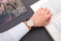 Đồng hồ nam SRWATCH SG3002.4602CV trắng, mặt tròn, sang trọng, lịch lãm với dây da nâu và vỏ máy chất liệu thép không gỉ được mạ vàng công nghệ PVD giúp chống bong tróc lớp xi mạ, 3 kim thanh mãnh đều được mạ vàng nổi bật, sắc nét trên nền đồng hồ màu trắng cuốn hút, mặt kính sapphire cao cấp chống trầy, có 1 lịch ngày đi kèm, chống nước tiêu chuẩn 5ATM.