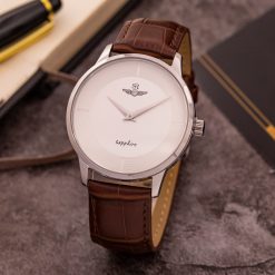 Đồng hồ nam SRWATCH SG3004.4102CV trắng thiết kế đơn giản, mặt tròn, dây da nâu cao cấp, cọc số thanh mãnh, sắc nét, vỏ máy, 2 kim, nút điều chỉnh giờ đều bằng thép không gỉ được mạ sáng bóng nổi bật trên nền trắng tăng phần lịch lãm cho người đeo, mặt kính đồng hồbằng sapphire cao cấp chống trầy, chống nước 5 ATM.
