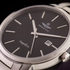 Đồng hồ SG3010.1101CV mặt đen, vỏ và dây kim loại thiết kế đầy nam tính và sang trọng dành cho phái mạnh. Vỏ máy và dây đeo bằng chất liệu thép không gỉ. Mặt đồng hồ nền màu đen sang trọng, có các cọc số đơn giản sắc nét. Mặt đồng hồ được bảo vệ bởi mặt kính sapphire cao cấp chống trầy, có lịch ngày đi kèm, độ chống nước 5ATM.