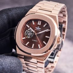Đồng hồ nam SRWACTH SG88804.1305AT mặt oval, vỏ vàng hồng, vạch chỉ giờ mỏng và 3 kim giờ màu trắng nổi bật trên mặt số màu nâu sang trọng, thanh lịch. Mặt đồng hồ kết hợp với dây đeo bằng thép không gỉ kết hợp công nghệ mạ PVD chất chất lượng cao. Đồng hồ tự động có thiết kế lộ cơ – open heart tạo nên sự khác biệt. Mặt kính sapphire chống trầy xước và khả năng chống nước 5ATM mang đến sự an tâm cho người dùng.