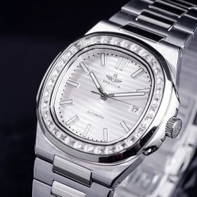 Đồng hồ nam automatic SRWACTH SG88806.1102AT mặt oval sở hữu vỏ ngoài màu trắng,vạch chỉ giờ và 3 kim đồng hồ màu trắng hài hòa ,thanh lịch.Mặt đồng hồ màu trắng được bao quanh bởi những viên đá trắng càng làm tăng thêm vẻ nổi bật,kết hợp với dây đeo bằng thép không gỉ chất lượng cao.Đồng hồ sở hữu mặt kính saphire chống trầy xước và khả năng chống nước tiêu chuẩn 5atm ,mang đến sự an tâm cho người dùng.