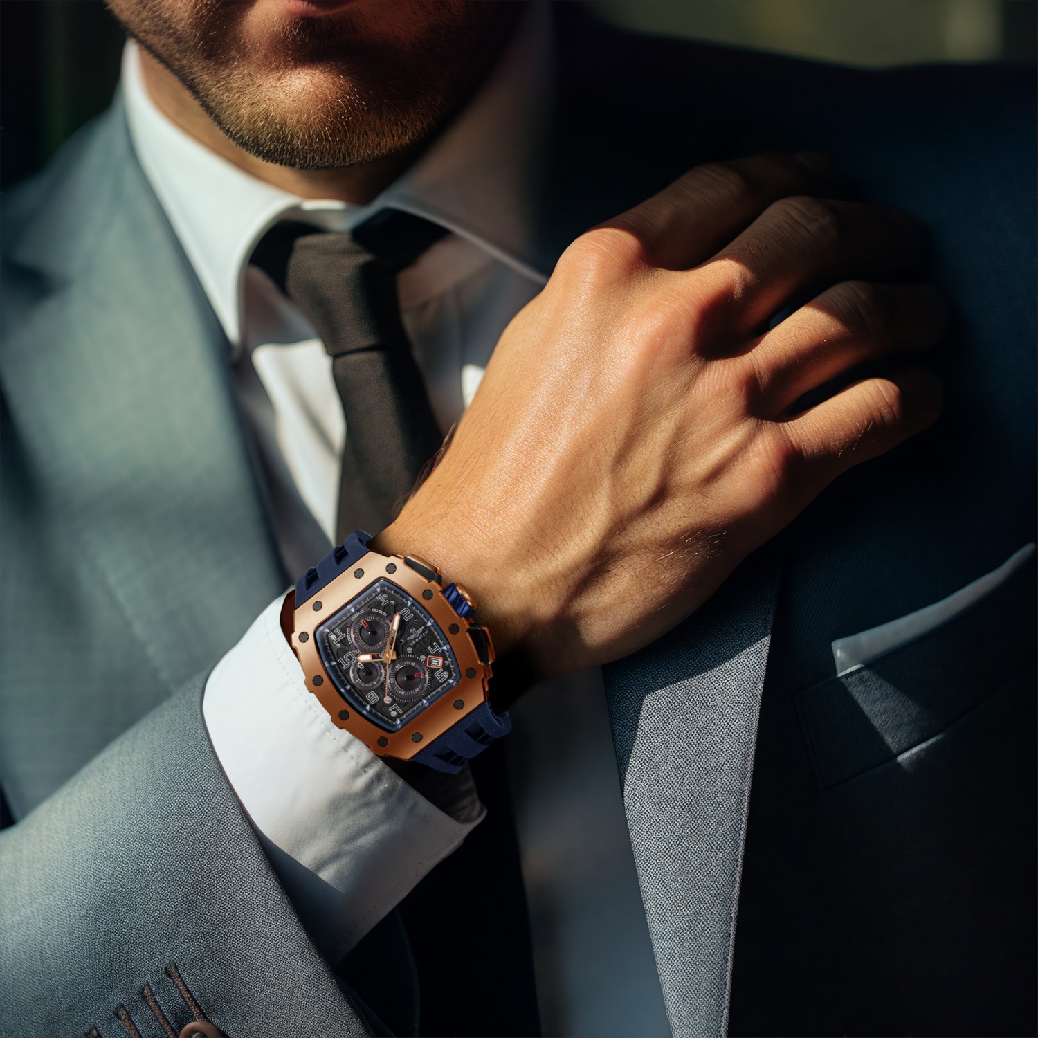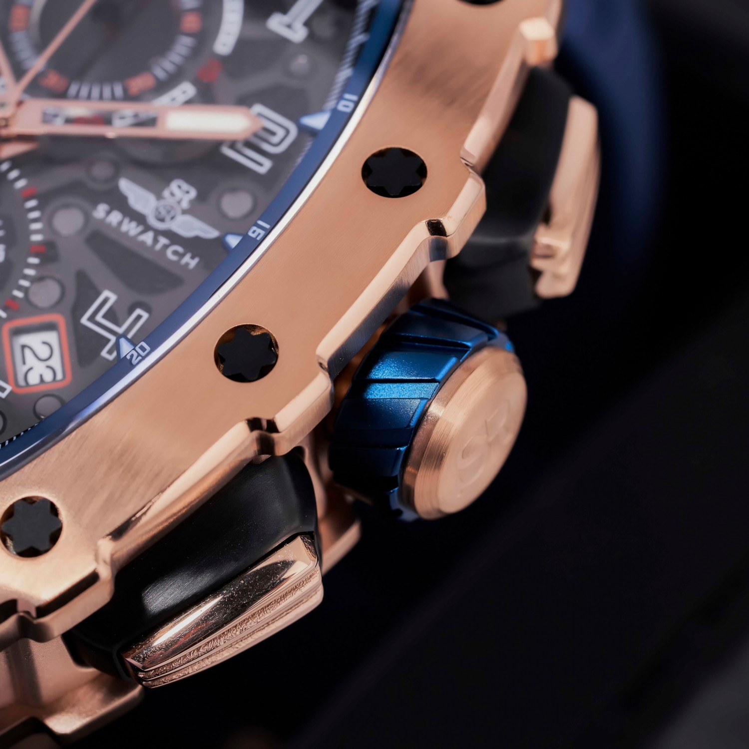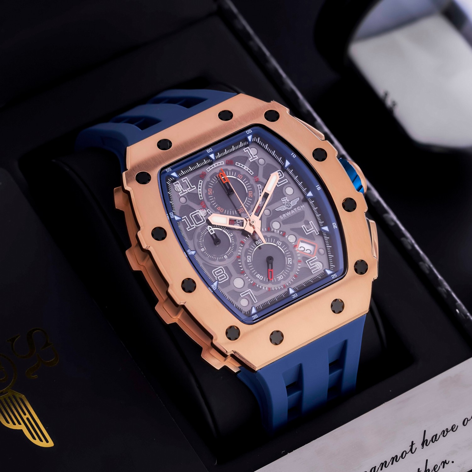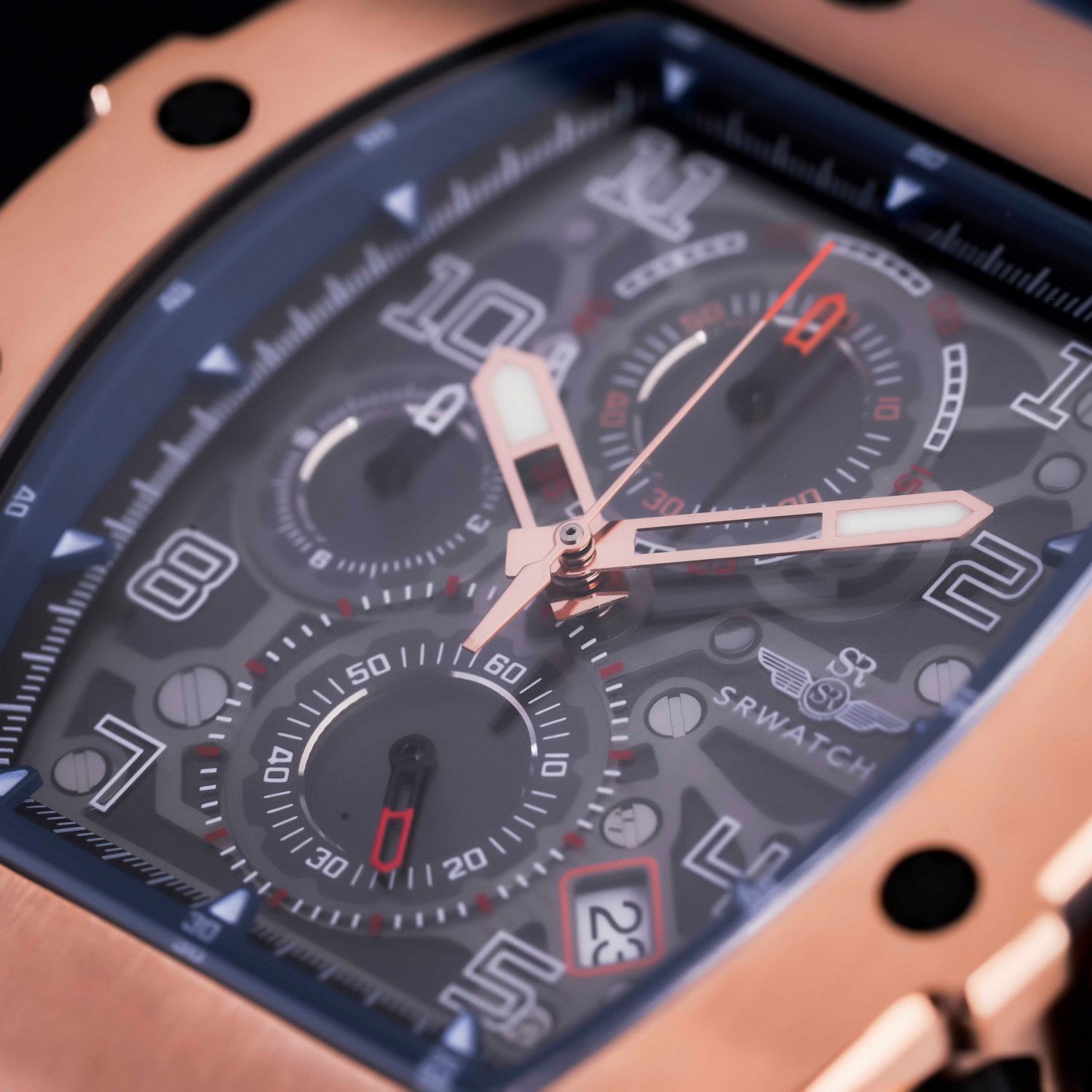 Đồng hồ nam SRWATCH SG88881.4903SP mặt đồng hồ thiết kế thể thao hiện đại. Vỏ đồng hồ được mạ vàng Công Nghệ PVD, gia công tỉ mỉ với các điểm nhấn là ốc hình sao 6 cạnh bao quanh mặt với độ hoàn thiện cao tạo nên sự mạnh mẽ. Dây đeo bằng cao su co giản tạo sự thoả mái. Đồng hồ có 3 kim chính cơ bản hiện thị giờ, phút, giấy. Đồng hồ có chức năng chronograph (giờ, phút, giây) thể thao thể hiện bằng 3 mặt đồng hồ nhỏ trung tâm. Kèm theo cửa sổ lịch ngày thuận tiện cho việc sử dụng. Mặt kính sapphire chống xước cao cấp, đạt tiêu chuẩn chống nước 5ATM, đảm bảo sự an tâm cho người đeo.