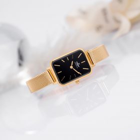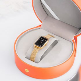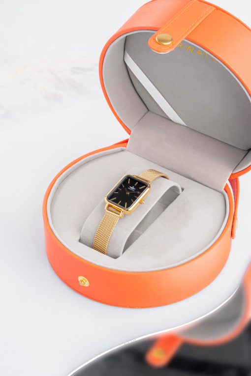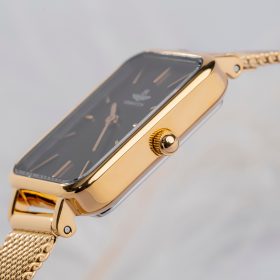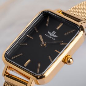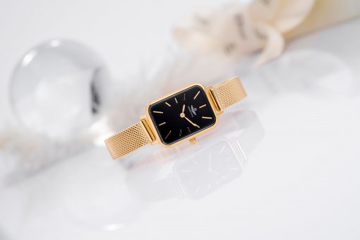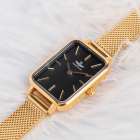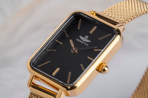 Đồng hồ nữ SRWATCH SL1610.1401TE có vỏ màu vàng,mặt đen,vạch chỉ giờ thanh mảnh và kim giờ màu vàng mang đến vẻ thanh lịch-tinh tế cho phái đẹp.Mặt đồng hồ hình chữ nhật kết hợp với dây đeo dạng lưới bằng thép không gỉ-mạ vàng công nghệ PVD chất lượng cao.Đồng hồ chạy bằng pin,có mặt kính sapphire chống xước cao cấp và khả năng chống nước 5ATM mang đến sự an tâm cho người dùng.