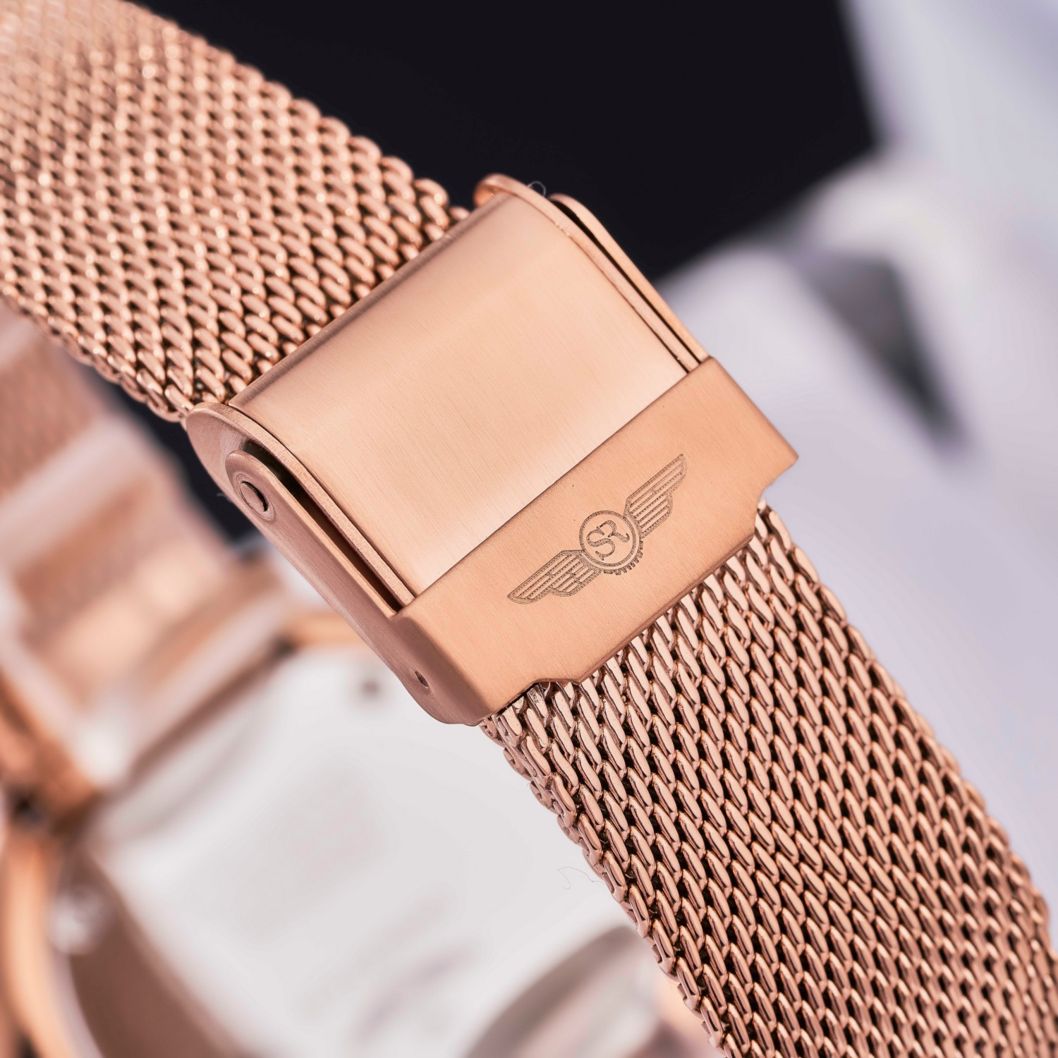 | CHẤT LIỆU DÂY | Lưới thép không gỉ cao cấp – Stainless Steel 316L + Mạ vàng – hồng công nghệ PVD |