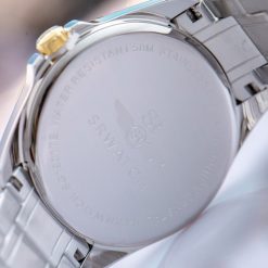 Đồng hồ nam SRWATCH SG1901.1201TE với thiết kế mặt tròn, cùng với dây đeo kim loại, cùng với cách phối màu de-mi vàng/ trắng mang lối thiết kế hiện đại, mạnh mẽ, sang trọng. Vỏ đồng hồ, dây đeo, và các cọc số được gia công tỉ mỉ từ thép không gỉ với độ hoàn thiện cao. Đồng hồ với 3 kim và cửa sổ hiện thị 2 lịch tạo thuận lợi khi sử dụng. Mặt kính sapphire cao cấp chống trầy cùng với tiêu chuẩn chống nước 5ATM đảm bảo mang đến sự an tâm cho người đeo.