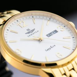 Đồng hồ nam SRWATCH SG1903.1402TE với thiết kế mặt tròn, cùng với dây đeo kim loại, mang lối thiết kế hiện đại, mạnh mẽ, sang trọng. Vỏ đồng hồ, dây đeo, và các cọc số được gia công tỉ mỉ từ thép không gỉ mạ vàng công nghệ PVD với độ hoàn thiện cao. Đồng hồ với 3 kim và cửa sổ hiện thị 2 lịch tạo thuận lợi khi sử dụng. Mặt kính sapphire cao cấp chống trầy cùng với tiêu chuẩn chống nước 5ATM đảm bảo mang đến sự an tâm cho người đeo.