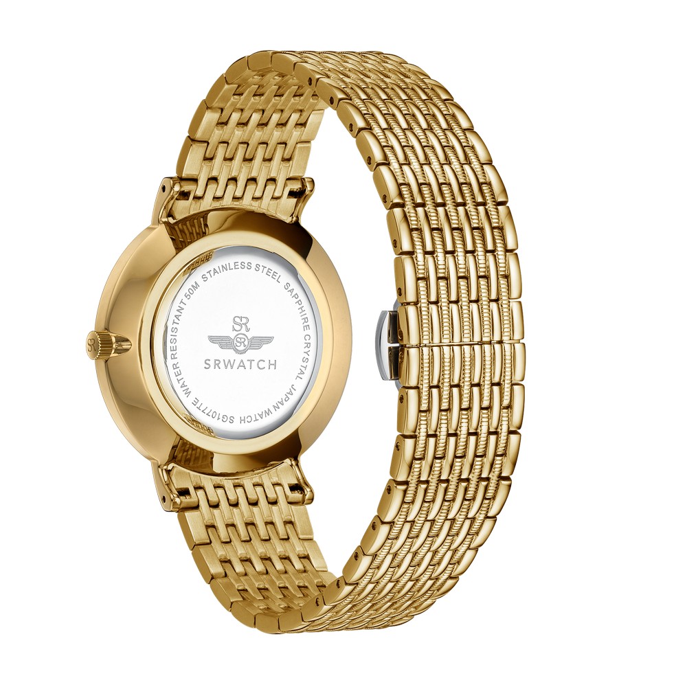 SRWATCH SG1077.1401TE gây ấn tượng với thiết kế mặt tròn nền đen tinh tế, tôn lên vẻ lịch lãm và đẳng cấp của quý ông hiện đại. Vỏ và dây thép không gỉ được mạ vàng công nghệ PVD cao cấp được hoàn thiện chắc chắn, tạo cảm giác sang trọng và bền bỉ theo thời gian.Mặt số tối giản, hài hòa cùng kim vàng thanh thoát và vạch giờ sắc nét, mang lại vẻ đẹp trang nhã nhưng đầy cuốn hút. Đồng hồ được trang bị kính sapphire chống trầy xước và khả năng chống nước 5ATM, đảm bảo sự an tâm trong quá trình sử dụng hằng ngày.